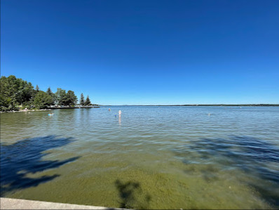 Great park that is lakeside with lots of green space and a section of sandy beach 🏝️. The lake is amazing, the water 💦 is clear and warm. One of the best lakes in Alberta. There are public washrooms available but no parking nearby. There are lots of picnic tables and benches available. Just a wonderful place to relax and enjoy the day with friends and family with wonderful lake views.